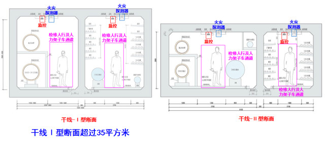 一般設置于道路中央下方或道路紅線外綜合管廊帶內,主要輸送原站(如自來水廠、發電廠、燃氣制造廠等)到支線綜合管廊,其一般不直接服務沿線地區。其主要收容的管線為電力、通訊、自來水、燃氣、熱力等管線,有時根據需要也將排水管線收容在內。在干線綜合管廊內,電力從超高壓變電站輸送至一、二次變電站,通訊主要為轉接局之間的信號傳輸,燃氣主要為燃氣廠至高壓調壓站之間的輸送。干線綜合管廊的斷面通常為圓形或多格箱形,綜合管廊內一般要求設置工作通道及照明、通風等設備。干線綜合管廊的特點主要為:穩定大流量的運輸、高度的安全性、內部結構緊湊、兼顧直接供給到穩定使用的大型用戶、一般需要專用的設備、管理及運營比較簡單。