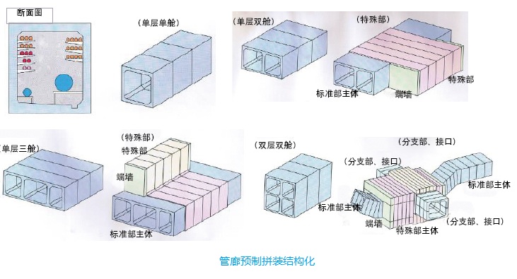 綜合管廊預制拼裝技術是國際綜合管廊發展趨勢之一,大幅降低施工成本,提高施工質量,節約施工工期。綜合管廊標準化、模塊化是推廣預制拼裝技術的重要前提之一,預制拼裝施工成本的幅度取決于建設管廊的規模長度,而標準化可以使得預制拼裝模板等設備的使用范圍不局限于單一工程,從而降低攤銷成本,有效促進預制拼裝技術的推廣應用。此外,編制基于綜合管廊標準化的通用圖,大幅降低設計單位的工作量,節約設計周期,提高設計圖紙質量。